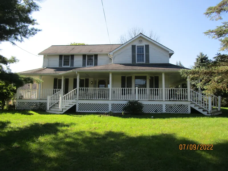 Farmhouse on over 4 acres and a paved road with multiple outbuildings including a 20 x 48 shop, 15 x 18 guesthouse, and 14 x 22 storage barn. This home has 4 bedrooms, 2 baths, full basement, wrap-around porch, and 3 car detached garage.