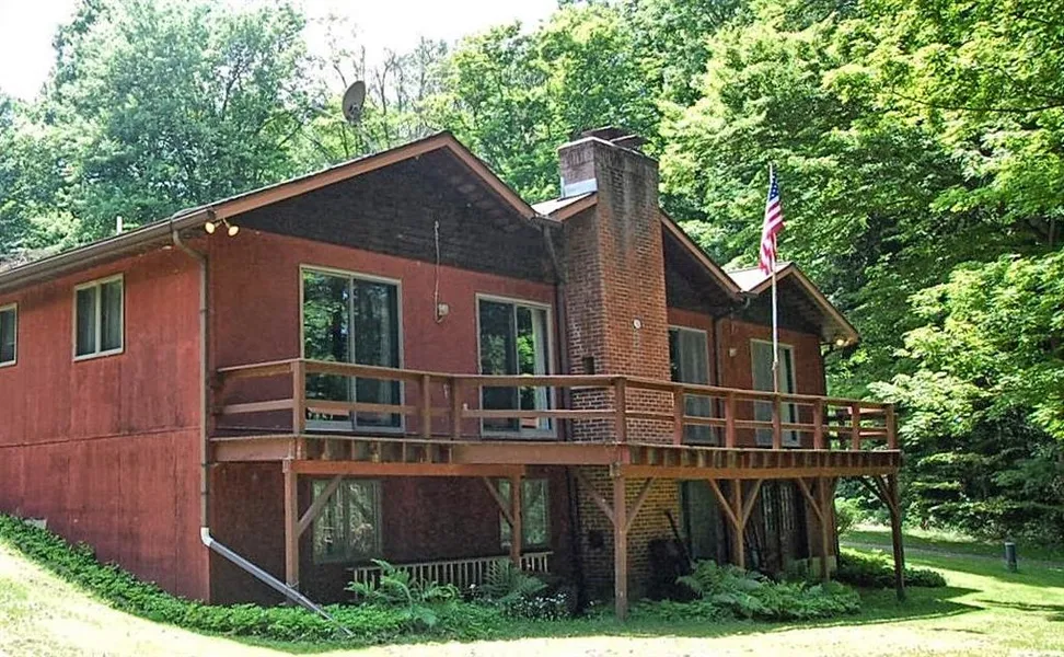 Country living in this contemporary Frewsburg 3 bedroom, 3 bath home, surrounded by 24 wooded acres! Main floor features huge great room/dining area with loor to ceiling brick fireplace, cathedral ceilings, sliders to the deck that runs the length of the house. The kitchen also has cathedral ceilings, skylight, lots of cabinetry, Corian counters ... eat-in area w/ built-in desk & sliders to a small patio. Family room with woodburning fireplace has entry to the master bedroom suite...walk- in closet, bath and sliders to the deck. Other side of the house are two bedroom and full bath. Off the kitchen is the back entry from the 2.5 car garage, the laundry room and another full bath. Full walkout basement has a rec room with stone WBFP, storage room w/ wood stove and entry doors. Beautiful private park-like setting...call for a tour!