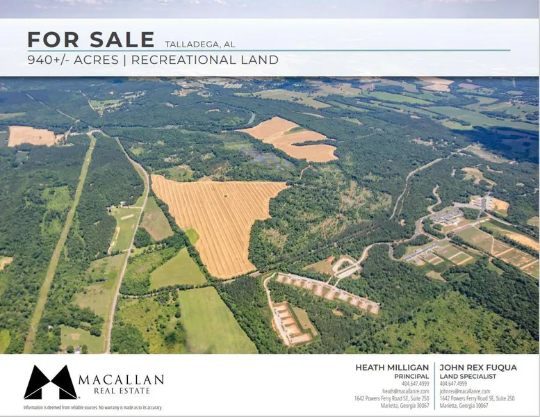 Macallan Real Estate is pleased to present for sale The Walker Farm. This sportsman's paradise is nestled on the banks of the Choccolocco Creek, between Talladega Superspeedway and the 5-star, state-of-the-art CMP Marksmanship Park. This property features a magnificent blend of upland pine timber, hardwood bottoms and irrigated cropland making it an excellent place to hunt deer, turkey, dove and duck. Its proximity to I-20 paired with the booming growth of manufacturing jobs along I-20 ensures this is an excellent long-term investment opportunity.