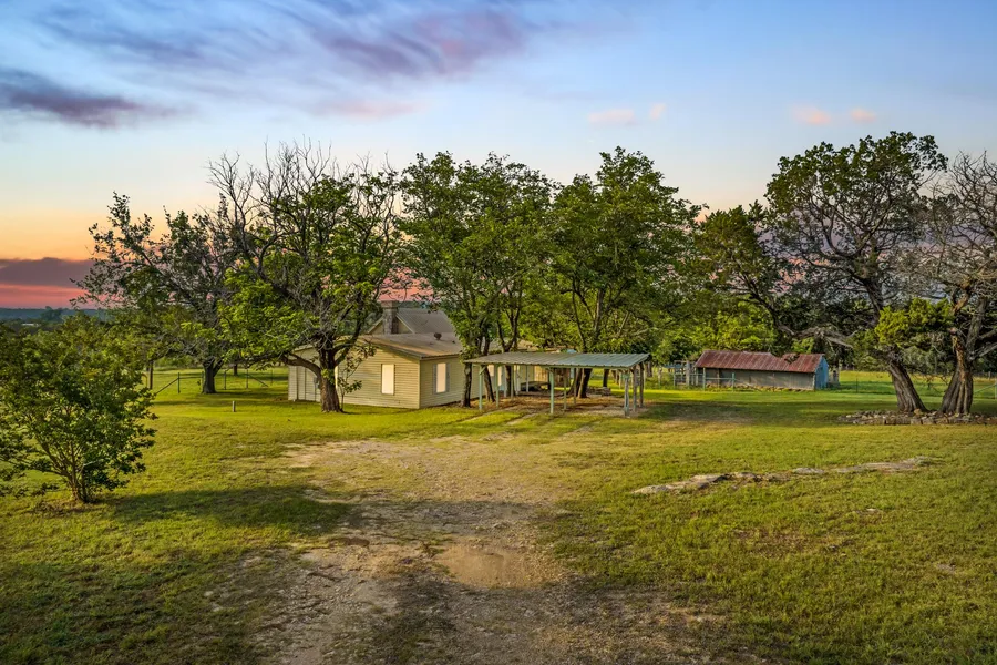 10.8 acres with 2 Br 1.5 Ba ranch style home. The living room has a fireplace with electric insert, the kitchen-dining room and utility room have vinyl linoleum and laminate wood flooring in the living room and the bedrooms. There is one water well, a small craft-workshop, and a nice metal building with concrete floor that is 27 ft. x 19 ft. with 2 double doors that are 9 ft. x 9 ft. There is a livestock barn on the property, good fences and the property has good tree cover with rolling terrain. Fiber Optic Internet Service is available at the property. The property is centrally located, being approx. 30 minutes from Gatesville, Hamilton, Goldthwaite, and Lampasas and approx. 1 hour from Waco, Temple, Killeen-Copperas Cove and Stephensville.
