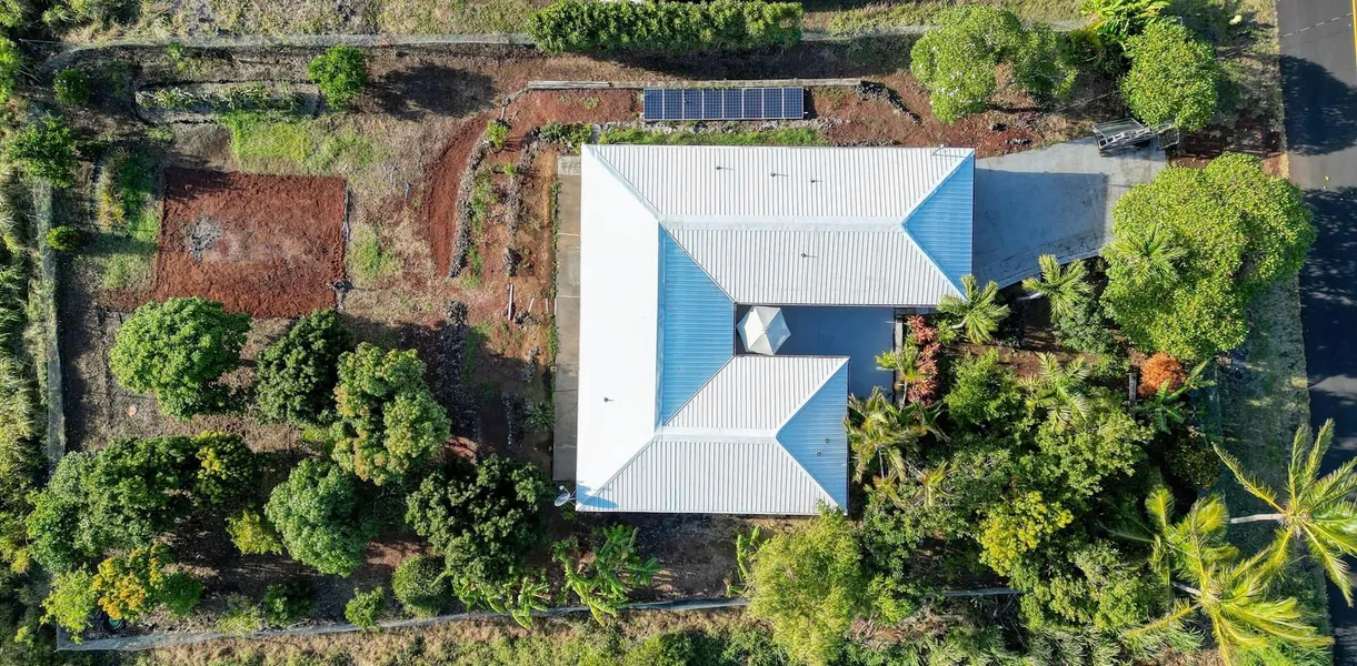 Indulge in the beauty of nature as you step outside to a wind-protected courtyard that overlooks the front yard with mature plumerias and vibrant birds of paradise. In the back yard you'll enjoy the trade winds while watching the sunrise. There's an incredible variety of fruits, including six mature mangos, dragon fruit, coconut palms, lemons, tangerine, oranges, grapefruit, guava, loguat, mulberry, mtn pair, fig, soursop, pineapple and 5 mac nut trees!