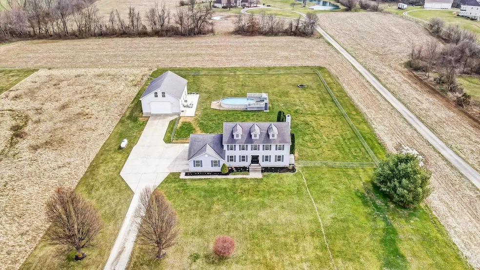 Exceptional one owner home, impeccably maintained & situated on 2 parcels equaling 4+ acres! An expansive concrete parking area connects the 2+ car attached garage AND 32' x 48' outbuilding w/oversize door, loft, & concrete patio! The front door opens to a foyer flanked by a formal living rm & huge dining rm. Eat-in kitchen w/quartz counters, breakfast bar, deck access, AND opens to the family rm accented w/a gas FPLC! Convenient 1st floor 1/2 BA & laundry. The 2nd floor is complete w/4 generous BRs & 2 full BAs, including an owner suite w/private BA & walk-in closet. LL w/finished rec rm, bonus rm (5th BR), & ample storage. Outside you'll find a composite deck, pool w/deck, fenced backyard, & room for a garden! *Backup Generator stays!*