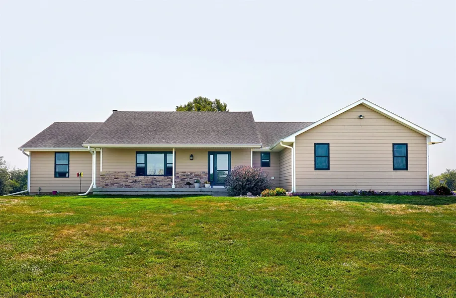 Beautiful custom ranch on 8 acres, less than 10 minutes from Indianola. The main floor feels inviting with a vaulted living room, stone fireplace, open kitchen with island seating, and dining area with deck access. Spacious master suite features a soaking tub, dual sinks, and oversized walk-in closet. Two additional bedrooms and full bath complete the main floor along with laundry and drop zone off the 3-car garage. Walkout lower level offers a huge family room, storage, 4th bedroom with bath, and patio with firepit. Impressive 40'x56' outbuilding with electricity, concrete and oversized doors is ideal for RV, camper, or hobbies. Plenty of space to enjoy country living close to town!