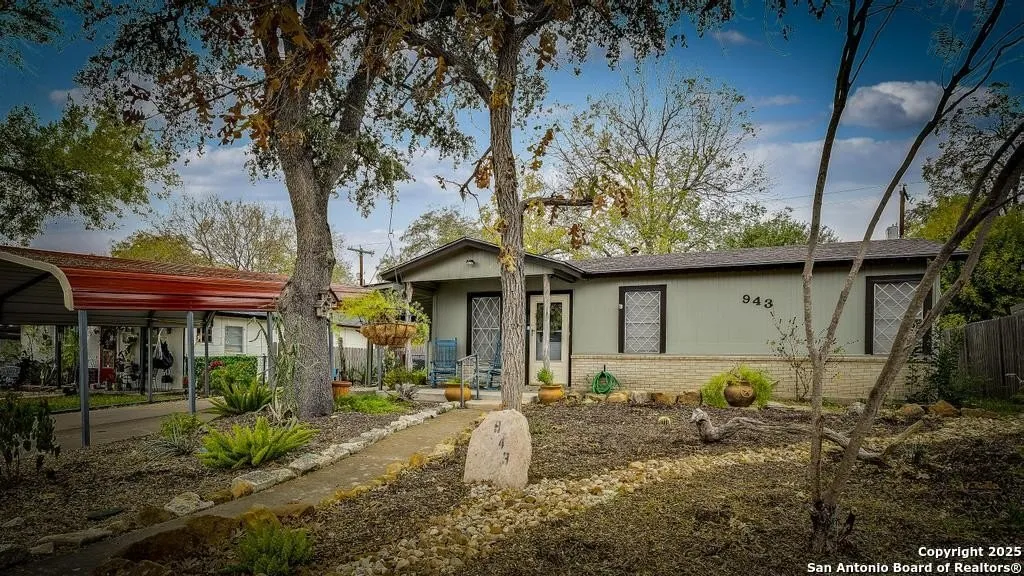Have you ever stepped into a house that feels like it's giving you a big, warm welcoming hug? That's the vibe of this charming, one-story located in the popular Bellaire community! Step into a formal living area with brick accent wall, leading to the large expansive kitchen that offers a wonderful gas stove with stainless vent hood, a refrigerator that conveys, a stainless double sink, and an abundance of cabinets and counterspace with gorgeous backsplash. The showcase of this home is the large 33x14 family room (den) that features a dining area and second living room made for entertaining or for your personal sanctuary relaxing after a long day. Bathed in natural light from the picture window overlooking the lush and shady backyard, there is plenty of room here for an office area as well. Stylish vinyl plank flooring throughout the common areas and recent new carpet in the bedrooms. The bathrooms offer both a tub for littles and a step-in shower in another for aging in place. Central heat and air throughout the home, with the addition of a small gas heater also in the family room that provided much warmth during the city's electric power outage. Utility room also inside with stackable washer and dryer to convey with home purchase. Ceiling fans throughout the common areas and in the bedrooms. The exterior of this home is also special with low-maintenance, zero landscaping in the front yard. A carport canopy provides shelter from the elements for as many as 4 cars. A cozy enclosed porch expands the space between the family room and the backyard that is perfect for sipping coffee in the mornings! The backyard is generous in size and offers a privacy fence, mature trees, designated gardening areas, and two storage units that will convey. This home is located just a short walk to the cute revamped Bellaire Park with newer jungle gym equipment for kids just down the street and it is also convenient to Palo Alto College, Texas A&M San Antonio, the Toyota manufacturing plant, and Loop 410! Ride the Mission Bike Trail located within a mile too!