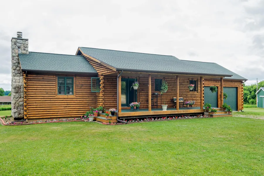 Attention for all that love HORSES AND HARLEYS! This is the place for you! Property features over 10 aces of open rolling meadows with a 28x32 horse barn plus state land with horse trails are near by. Separate 24x28 heated Harley garage. Scenic roads all around the property to ride. Ranch style D-log home features everything you need on one level, hickory kitchen cabinets, slate flooring, stainless steel appliances, full laundry, master suite and another bedroom and full bath on the main level. Plus a full basement with a bedroom and full bath to be finished with an offer. Large open living room with fireplace in the lower level as well(not finished living space). Additional 16x20 log barn/workshop on property.