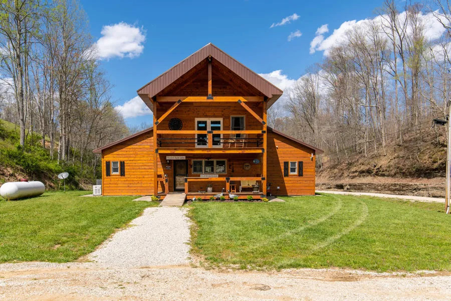 Your 200+/- acres awaits you! 3 year old log home with 3 bedrooms and three baths. Custom built by the owner. Gorgeous wood floors throughout. Sleeping loft and bath on second level. As you walk into this home, you will be amazed with the 2 1/2 story wall of windows as well as the floor to ceiling stone fireplace with gas logs. A Chef's dream kitchen offers not one, but two gas ranges! Out back is a 4000sqft pole barn that includes a kitchen and 2 bathrooms! It is completely insulated including the roof and floor and has hot water heating. The owner dug a 350 ft well that services the property, but city water is available. An 11k generator is also connected to the house in the event of a power outage. This property has so many possibilities! Don't let this one get away! Nestled in the heart of the Red River Gorge and close to Natural Bridge State Park, Daniel Boone National Forest, and many area recreation spots. Call today for your little piece of Kentucky!