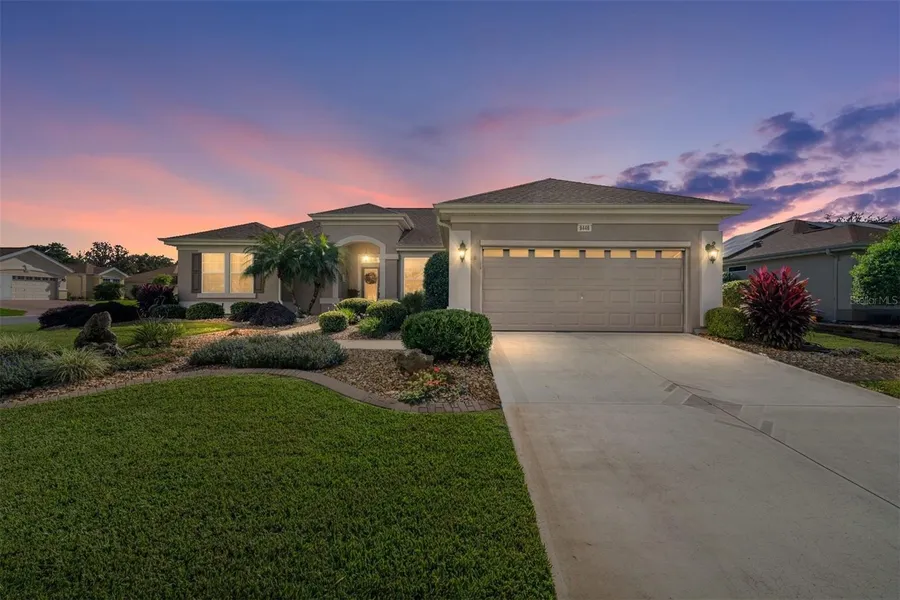 This immaculate 2-bedroom, 2-bath St. George model sits proudly on a beautifully landscaped corner lot and shows like a model home. Step through the leaded glass front door and you’ll immediately notice the care and upgrades throughout — with ceramic tile and laminate flooring only (NO carpet anywhere!). The kitchen is a standout with its Corian countertops, tiled backsplash, white cabinetry, newer white appliances including a gas range, upgraded sink, skylights, recipe windows, and a convenient breakfast bar. Crown molding graces every room, adding a touch of elegance throughout. Perfect for entertaining, the kitchen overlooks the family room so you’re always part of the conversation. The living and dining rooms feature recessed lighting, laminate floors, and vertical blinds, creating a bright and welcoming space. The spacious primary suite includes laminate flooring, crown molding, and mini-shade window treatments. The ensuite bath features a raised double vanity with granite countertops, plus both a water closet and linen closet. The guest bath has also been tastefully updated with a raised vanity and granite counter. The laundry room, located just off the kitchen, offers extra cabinetry for storage and doubles as a butler’s pantry. The extended garage includes pull-down attic stairs, a privacy screen, windows in the garage door, and an epoxy-coated floor. Relax year-round in the enclosed lanai — cooled and heated for comfort — with a painted floor and roller shades. Just outside, enjoy your private 10x12 patio, perfect for grilling or morning coffee. Recent updates include a new roof (2022) and HVAC system (2019). This home truly has it all — pristine condition, smart updates, and exceptional attention to detail. Don’t miss seeing it today!