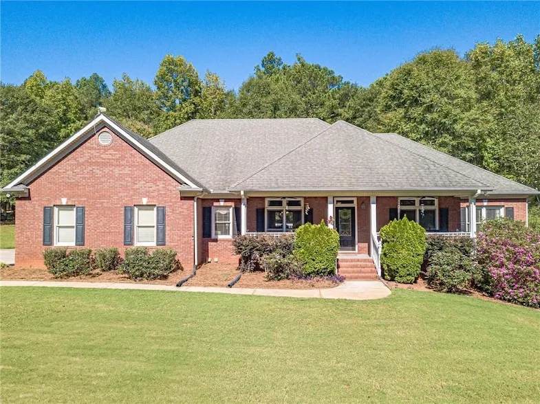 Custom-built 4-sided brick ranch ideally situated on 5 private acres with a full basement, offering both charm and seclusion. Relax on the expansive rocking chair front porch or unwind on the large deck with stunning views of nature watch deer graze near the woods. The property also features a spacious 2-car detached garage/workshop with electricity and water. Inside, the sunny gourmet kitchen has high-end appliances, double ovens, and a Jennaire cooktop with grill. The family room has a vaulted tongue-and-groove ceiling and a striking masonry stone fireplace. The luxurious master suite includes granite dual vanities, a makeup table, a soaking tub, and a separate shower. Enjoy a split bedroom plan for added privacy, plus a formal dining room and dedicated office space. Outdoors, there s a 1/2 acre fenced dog run, ideal for pets. Additional highlights include newer HVAC systems, two water heaters and fiber internet. The full basement with a bath and storm shelter has multiple flex spaces; create your own craft space or man cave. Home is located near shopping, nature trails, and Facebook facility. Experience the best of country living with modern comforts!