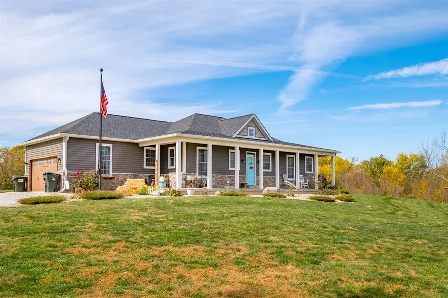 Built in 2019! This ranch home with walkout basement sits on over 6 acres, offering the perfect setting for relaxation and recreation at home. Conveniently located in Hope, Indiana, overlooking a private pond, partially wooded property with trails for hiking and ATV riding, a 42x28 pole barn with a loft, wood burning stove, cable, water, and electricity and plenty of space for storage. Home features open floorplan with connected kitchen, dining and family room, perfect for entertaining. Gorgeous view of pond from the attached screened porch. All stainless appliances, farmhouse sink, and breakfast bar. 4 bedrooms, primary and bedroom #2 on main and 2 more in the basement, each has it's own full bathroom & WIC! 2nd laundry hookup in basement!