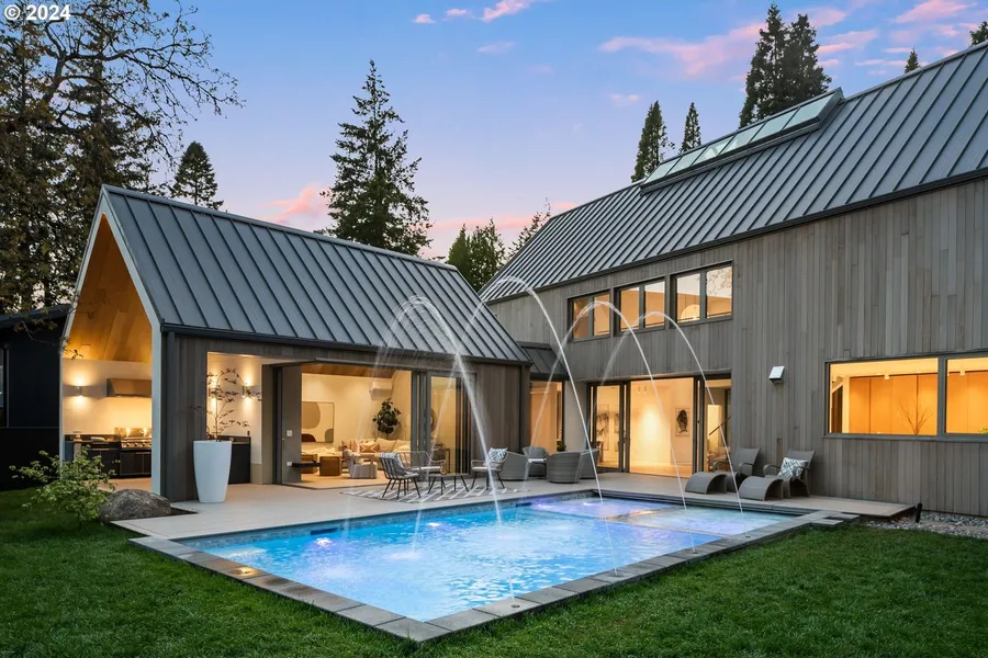 "Villa M" A Truly Custom Built Contemporary Scandinavian Farmhouse located in the sought-after Dunthorpe neighborhood. Stunning New Construction, soaring 30-foot ceilings capped by glass, creating a light filled living experience. Extensive use of custom white oak cabinetry throughout home, craftsmanship of a bygone era. High-end European Windows and Doors the pinnacle of form and function blurring the lines between interior and exterior. Transverse a glass hallway to the large living room where you?re greeted by vaulted ceilings and a grand fireplace. Walls of glass part to open to the pool deck, and outdoor kitchen. Pool+Spa with fountains, lighting, and automatic pool cover. Chefs kitchen with oversized island, waterfall edge, slab backsplash and high-end appliance package. Upper-level bedrooms with built-in closets and functional loft spaces, taking advantage of the opportunity presented by the voluminous vaulted ceilings. Primary suite with expanisve built-in closet system, walls wrapped in white oak, primary bath with spacious wet room. Main level study with adjoining full bath and zero edge shower entry provide flexibility with accessibility. Sleek clean finishes, lighting choices, museum reveal baseboards, and zero trim doorways all flawlessly crafted and executed to compliment the refreshingly high-end modern aesthetic. Why wait to build? When you can have it all today!