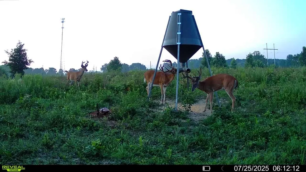 Blinds & Feeders: We assembled and installed two 6x6 Redneck blinds on 5-foot platforms in prime locations. We also put in back-side access trails so you can slip in and out without disturbing the plots. To complement this, we placed two 1,200-lb feeders within sight of each blind and easy to access for filling and running cameras.