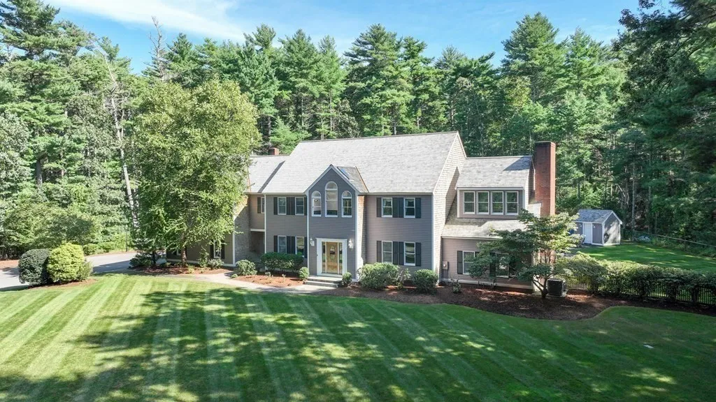 Welcome to one of Duxbury's most desirable neighborhoods! This stately colonial is situated on 2 acres of beautifully landscaped grounds at the end of a long driveway. A designer Gunite pool and stone patios are set against a backdrop of a beautiful large lawn and mature trees offering complete privacy abutting Town Forest and trails. Recently renovated, this home's main level offers 2 home offices, large kitchen with high-end appliances, dining room and two living areas both with glass doors leading out to the pool and patio. The living room is flooded with natural light, has a cathedral ceiling and a beautiful brick wood-burning fireplace. 4 bedrooms are on the second level including a primary suite complete with a sitting area and fireplace, his & her beautifully renovated baths and 2 walk-in closets. A finished 3rd level offers a 5th bedroom and flex space while the finished lower level has a Movie Theater and bonus room. An entertainer's dream with seamless indoor/outdoor living!