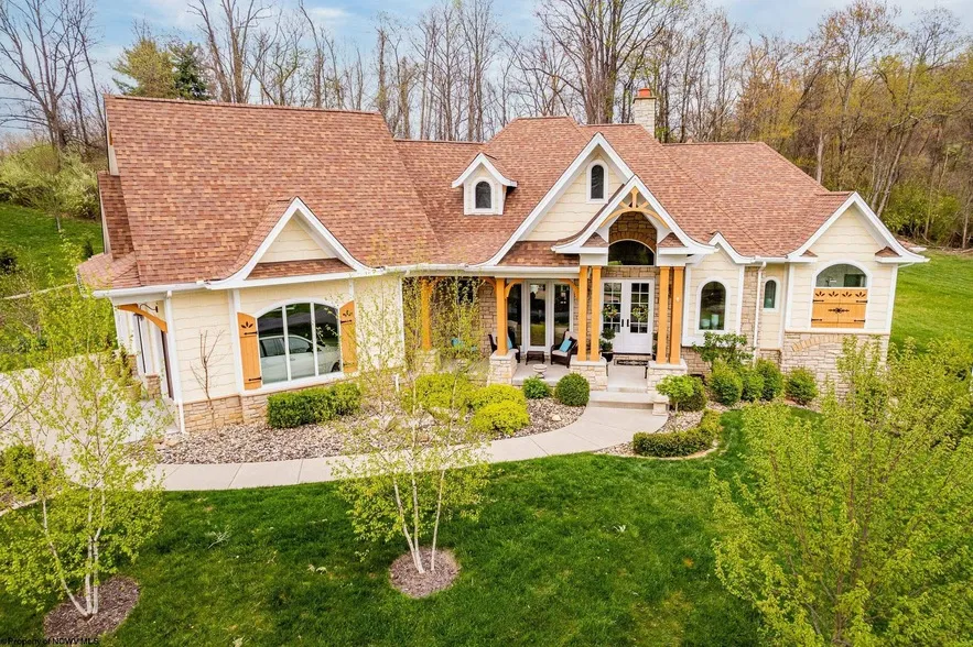 Stunning Craftsman Country French home setting on a picturesque 2.4-acre lot tucked away from hustle and bustle yet close to town. This thoughtfully designed residence features soaring ceilings ranging from 9 to 20 feet throughout, showcasing seven unique ceiling styles on the main level including a 12 coffered ceiling in the gathering room, an 18 beamed ceiling in the living room, two fireplaces and a barrel ceiling in the luxurious owner s bathroom. Natural sunlight pours through every space, highlighting the hickory hardwood floors, elegant Shaws sinks imported from England, honed granite countertops and a stunning wet bar for all your entertaining. The kitchen is a chef s dream with a 6-burner Thermador range, Thermador refrigerator and custom pantry with glass doors and mini chandelier. The owner s suite offers two spacious -in stepclosets and a spa-like bath with a soaking tub, floor-to-ceiling tile, and dual-entry step-in shower. Outdoor living is just as impressive with three distinct Trex decks, a classic front porch, and a beautifully landscaped English boxwood garden with paver patio. Additional features include 3-car garage, sunroom, rod iron and hardwood staircase, Kate Spade hardware in the laundry room, two furnaces, two AC units, a buried 1,000-gallon propane tank, and a whole-home Generac generator. The unfinished basement leaves much opportunity as well the grounds provide plenty of room for a pool or extensive gardens and landscape. Located just 7 minutes to I-79, I-68, shopping, dining, & within a short distance to Ridgedale Elementary. No HOA. Virtual tour link