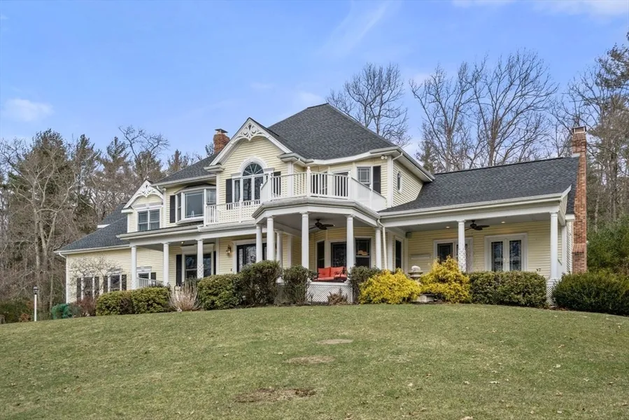 Absolutely stunning and expansive custom built colonial with spectacular views! Imagine exploring your own private, wooded ten acres and the abutting Upton State Forest. Inside you will enjoy a spacious custom kitchen with large island, pantry and dining area, The great room features a fireplace, cathedral ceiling, double french doors and a wet bar. An elegant formal dining room with wainscoting and butlers pantry provides the perfect space for entertaining, Work from home in the large, private office. An additional den/guest room and full bath complete the first level. Natural light abounds in the upper level with two spacious primary suites, one featuring a private rear staircase and the other with a balcony to enjoy the private grounds. An additional two bedrooms, full bath and separate laundry room complete this versatile floor plan. A bonus!-additional space in the full walk-out basement provides tall ceilings and is already plumbed and awaiting your finishing touches!