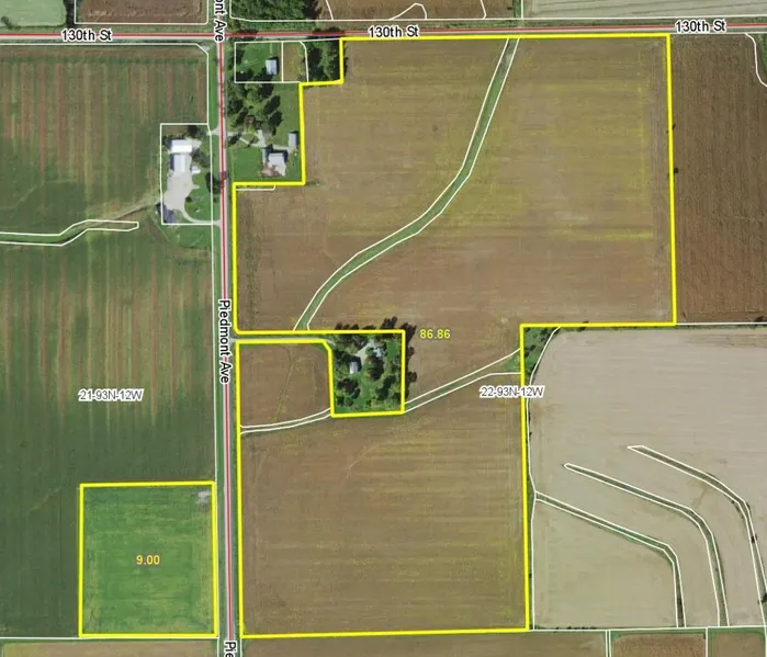 95.86 acres, m/l, located on the south side of 130th St., 2 miles SE of Frederika, IA. Farm has 91.7 NHEL FSA crop acres with a CSR2 of 76.4. Farm is tiled.