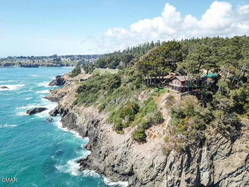 A truly splendid perch above the Pacific with panorama of ocean, Chapman Point, Smuggler's Cove and Mendocino village. Watch the ocean's moods up-close and be cooled by the clear air. The main floor has two en suite bedrooms with deck access. Open plan kitchen, living and dining all have ocean views. On the lower level is a well appointed guest suite with private entrance and ocean view deck.A separate workshop could become art studio or office space. Just a mile to the village.