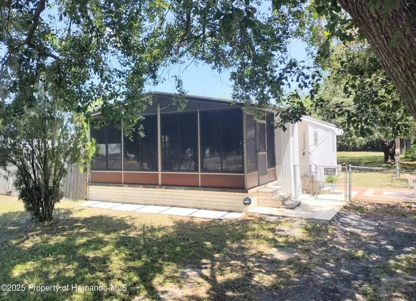 LOCATION, LOCATION, LOCATION! High and dry, no flood insurance required, yet under 5 miles to Hudson Beach and Hudson Marina. No HOA! No lot rent! New roof (2024). Quiet corner lot, fully chain-link and privacy-fenced with a huge double gate to pull in and park your toys! This home has beautiful tile floors and lifetime waterproof flooring throughout!! A gorgeous tiled three-season lanai with the windows tinted or open them to enjoy the breeze. This home has been very well-maintained. The yard is ample for your children to play, animals to roam, for you to entertain, or for whatever your future visions happen to be!! Plenty of storage with three large sheds on the property! Schedule your private showing today!