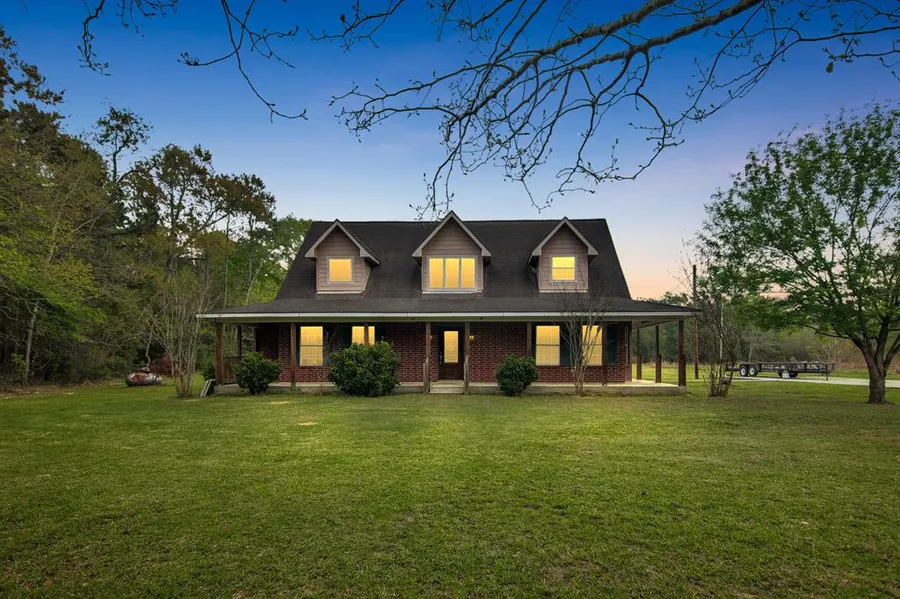 Escape to country living in this beautiful 4-bedroom, 3 bathroom home situated on almost 8 unrestricted acres in Tarkington ISD! Nestled at the end of a peaceful dead-end road, this private retreat also includes a barn and pond! This beautiful home includes a spacious living area with fireplace, kitchen with ample cabinet space, breakfast nook, formal dining room and tons of natural light streaming through the many windows. The primary suite is located downstairs and has french doors that open to the back patio area. The primary bathroom features a large walk-in shower, soaking tub and double sinks. Upstairs you will find the 3rd and 4th bedroom, 3rd bathroom and a large bonus room that could serve as a gameroom, home office, playroom - endless possibilities! Enjoy the serene views from the front wrap-around porch and spend your evenings relaxing on the covered back patio or entertaining guests. Schedule your visit today!