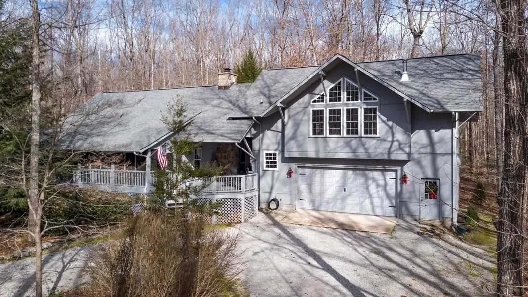 Beautiful mountain home nestled in the trees on a well landscaped, wooded lot. Main house w/hardwood floors, stone fireplace, open kitchen/great room & master suite w/huge closet & full bath. Private guest suite over garage features a bedroom & full bath & Franklin free-standing stove.