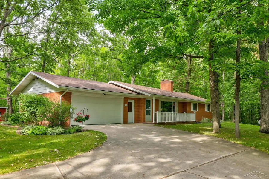 Soothed in solitude, this impeccably built and cared for all brick, 4 bedroom, one and a half bath 1450 sq. ft. home on 3 gorgeous acres is adorned in wooded tranquility. Home elements such as the large eat in kitchen with heated floor, year around sunroom, living room with fireplace and large windows, covered porch, work at home office, bedrooms and first floor laundry are enhanced with breathtakingly beautiful, wooded views from every room. The large, finished basement with fireplace offers even more space for family and recreation. Benefit from the superior craftsmanship by builder Heidi Korf that includes tons of storage, a Generac system, gutter guards, a shed, and an additional 912 sq ft 2 outbuilding with heat, electricity, loft, and skylights to use as a workshop or extra storage. All in a secluded private setting this quaint home in an excellent location with proximity to Saginaw, Bay City and Thumb area is a welcome retreat in Frankenmuth Schools.