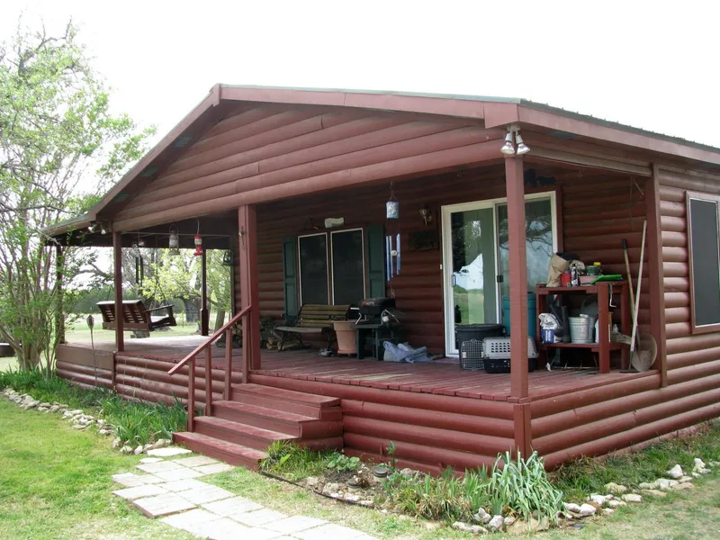 62.44 acres with nice 3 Br 2 Ba custom built Manufactured Home with log siding. The home has an open floor place with fireplace in the living room, a nice porch that goes around half the home. The home has 2 x4 walls with the AC-HV coming out the ceiling. The home is all electric with Multi County water meter, there is a metal barn that is approx. 25 ft. x 40 ft. that is enclosed on 3 sided, a storage building and another barn for livestock. The property has 1 stock tank, good tree cover with rolling terrain and great views.