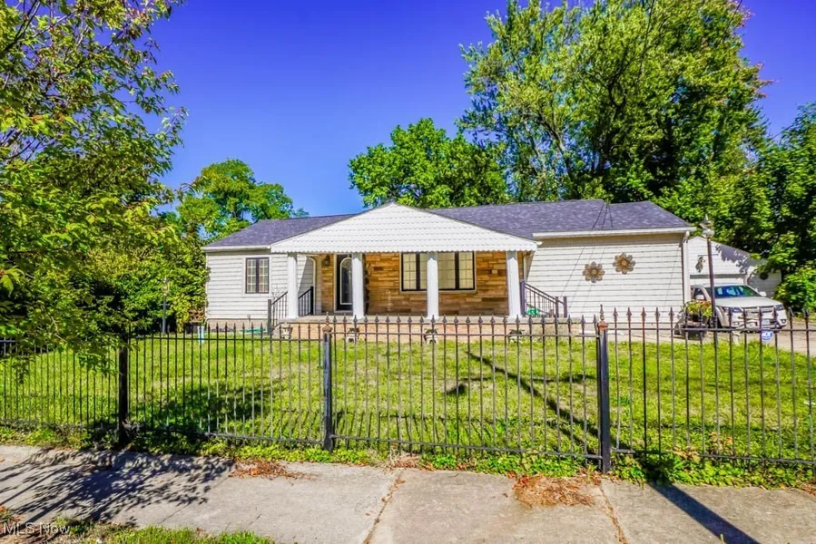 You'll love this nicely updated ranch on a private fenced half acre in West Akron! A picture window fills the living room with natural light, highlighting the hardwood floor and gas fireplace. The dining room has new LVP flooring, a chair rail, and a mirrored accent wall, perfect for holiday meals. In the kitchen, updates include Lifeproof flooring, new cabinetry, stainless steel appliances, a farmhouse sink, and quartz countertops. A nearby den with a sliding door leads to the patio and spacious backyard. Down the hall are three bedrooms, one with laundry hookups in the closet, along with a full bath featuring a walk in shower. The full basement provides a second laundry area with washer and dryer included, plus a convenient bathroom with a brand new shower install kit ready for installation. A two car detached garage and gated driveway add secure parking. With a one year old furnace, newer A/C, hot water tank, and roof, plus a central location near the University of Akron and downtown amenities, this home is a must see. Call to see it today!