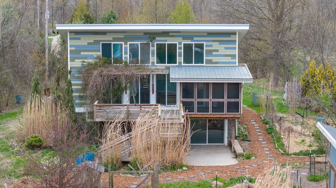 Truly one of a kind, custom, architectural art! This contemporary home is filled with huge windows allowing maximum natural light to fill it with some passive solar heat, tall vaulted ceilings in the full tile surround bathroom, main living and kitchen, main bedroom has shelving installed which could be taken down & used as a bedroom, bonus loft space overlooking main living area, 4 andersen slider doors on the back half leading to your 3 season's pet proof screened room and trex decking leading down to your cement patio over looking your sprawling land that is filled with plants and wild life! Your morning coffee views just got significantly enhanced! Walkout basement has a kitchen, basement bathroom has a full shower, sink & toilet, room for another bedroom/living space to be finished Exterior features include; 2300 sq ft greenhouse with its own well & overhead irrigation system, Large screened in gazebo, a 3rd recreational hand crank well, large solar panel system, pole barn in 2022, 2 oversized chicken coups, over 200 trees planted, apple/pear & blueberry orchard, raised garden beds, TWO 10,000 Sq Ft fenced in pastures, walkable trails throughout the entire property, monopitched roof allows for a 3 car carport up front. This house truly has it all to be completely self sufficient, could run a hobby farm out of this, there is endless potential. Additional features include custom kitchen cabinets, custom living room built in cabinetry, generator hookup, all appliances in the house stay, the screens on the house are pet/scratch resistant 2 on demand water heaters, electric vehicle charger, Main floor washer/dryer hookups in bathroom utility closet, solar powered net-zero home, fruit orchard, berry patch, pollinator habitat with native flowers. Schedule your showing today!