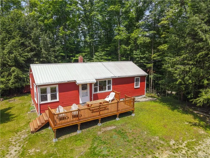 Nestled away on approx. 9 wooded acres is where you will relax at this lovely cabin! Sitting on the front deck yard you will overlook your own pond and lush woods. No neighbors to be seen. Cabin/cottage offers 2 bdrms, modern fully applianced kitchen, great entertaining space, fully furnished as you see it. (A few decorating items are excluded.) This is a seasonal, un-insulated property but access rd. (Monk Hill) is now being plowed in wintertime. NO PROPANE currently at sight so it would be needed for kitchen stove and black stove in Liv Room to be functional. 3 Sheds for plenty of storage. 75' deep drilled well. AWESOME STEEL ROOF! 2ND sbl# to be included-043200-019-003-0001-044-000-0000.