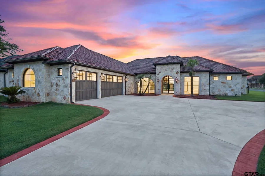If you are ken to the marvels of modern architecture and the ageless grace of Mediterranean beauty, look no further! This 4-bedroom, 3 ½ bath, 3,241 square foot luxury Hideaway golf course home premiers a flagstone exterior, custom cut stone window sills, and composite roofing tiles. The breathtaking juxtaposition of rugged stone, customized 10’ arched wrought iron entry door, handcrafted masonry cornerstones, and old-world Bevolo gas lanterns is an aesthetic show-stopper! The beautiful golf course views outside compete with the equally stunning views within: an open and spacious floor plan featuring Quaker Quartz luxury windows and interior doors, European Oak hardwood floors, Arteriors' chandeliers and pendants with Legrand designer switches and outlets, and a gourmet kitchen equipped with JennAir luxury appliances, quartzite countertops, island with breakfast bar, and soft-close solid wood cabinetry. The main living area focalizes a handcrafted fireplace and floor to ceiling glass walls that open to a covered patio complete with tongue and groove ceiling and an outdoor kitchen grill and sink. The master suites, attentively separated from the remaining three bedrooms, includes a private office and overlook the golf course and conveniently exits to the patio. The bath features a soaking tub and a large walk-in shower with strategically placed body sprays for perfect, deep tissue relaxation. The primary closet is enormous! Whether the attention to quality–industry-leading Class A fire-rated, Class 4 impact rated Paragon composite roofing tiles and two RUUD air comfort units with linear slot diffusers and integrated wireless control–or the attention to amenities–dog bath, 16-zone sprinkler system, three-car garage with custom AMANA premier wooden doors, an underground tornado storm shelter, and backup generator setup–don’t miss your opportunity to have it all! Hideaway offers resort style living with 27 holes of golf, Olympic Pool, Clubhouse, & 3 lakes!