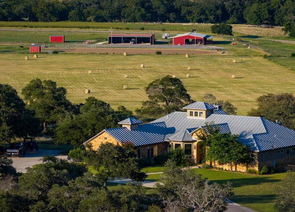At the heart of the ranch lies a custom 3-bedroom, 3.5-bath, 4,000 sq. ft. residence (7,000 sq. ft. under roof) that blends rustic elegance with modern comfort. Featuring ceilings from 10 to 20 feet, the home includes 8' doors, exotic granite countertops, and rare cave stone exterior rock sourced from Austin, Texas. Slate and tile floors provide durability and timeless style.