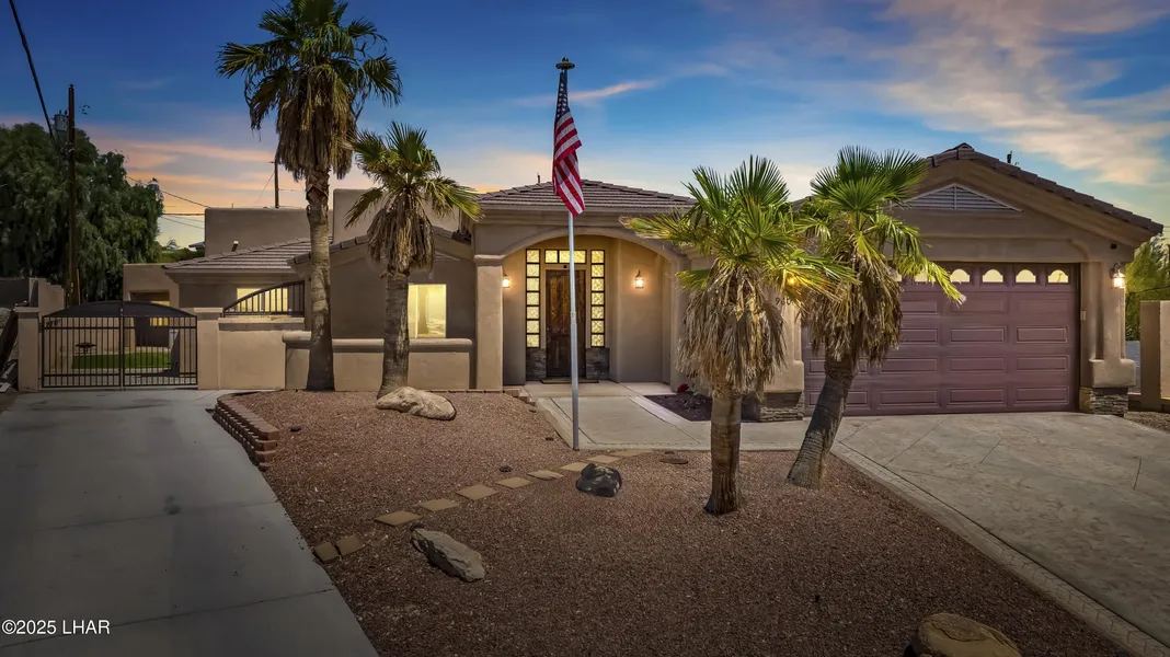 Stunning Custom Pool Home with Detached Casita in Lake Havasu! Welcome to this beautifully designed 3-bedroom, 2-bathroom custom pool home located in a desirable Lake Havasu cul-de-sac. This exceptional property also includes a 616 sq ft detached casita featuring a private 1 bedroom and 1 bathroom, perfect for guests, extended family, or rental income. Inside the main home, you'll find a dedicated office space, an indoor laundry room, and tasteful finishes throughout. Step outside to your private oasis featuring a sparkling swimming pool, outdoor bar area, and covered patio, ideal for entertaining or relaxing under the Arizona sun. Enjoy the observation deck with sweeping views and the mature landscaping that enhances the property's charm. Leased solar system for energy efficiency. Oversized garage and side driveway for extra parking or RV storage. Owned reverse osmosis and soft water systems. This is truly a must-see home that blends comfort, functionality, and luxury. Schedule your private showing today!