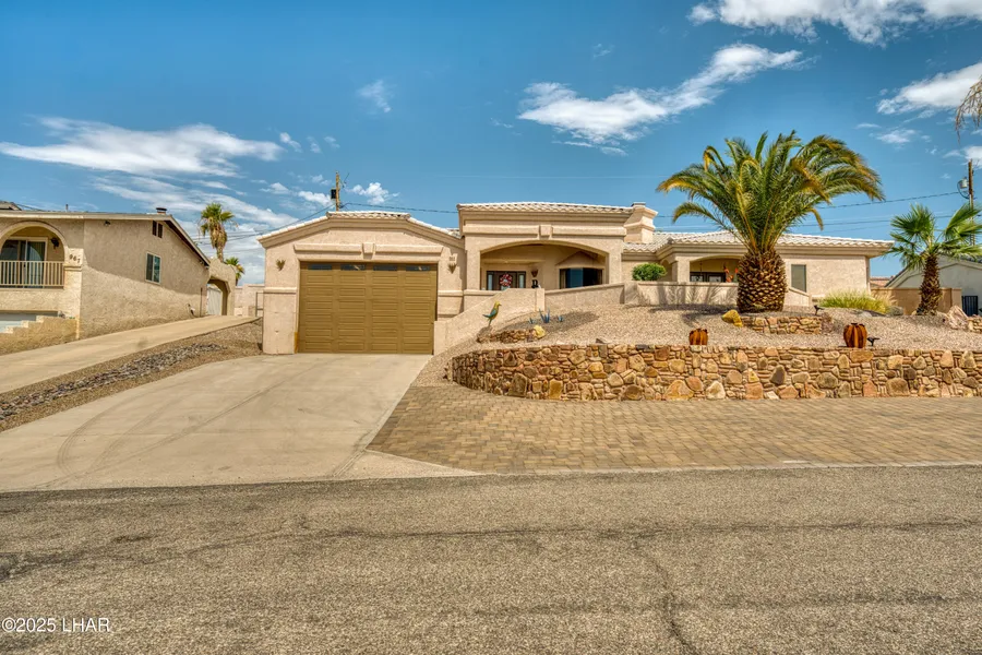 Beautifully update and remodeled heated pool with 3 water features, 3 bedrooms, 2 baths, tropical backyard with artificial grass both back and front yards Chef's kitchen with 2 pantries a prep island, exotic granite, seating bar, wet bar, and formal dining area. Open floor plan, large RV garage with indoor laundry. stainless steel appliances. The pool was built in 2018 with a conversation table, large baja shelf and travertine decking. New interior paint, large master bedroom with double walk in closet and double vanities, a fireplace jacuzzi tub and walk in shower. Second bedroom could be second master, guest bedroom has a finished loft for extra sleeping quarters. The garage has epoxy flooring with plenty of room for toys, boat, cars and has a cooling unit. Mature landscaping and the backyard has room for a casita. The pool even has custom tile art work in the gunite. Level front parking to the street.