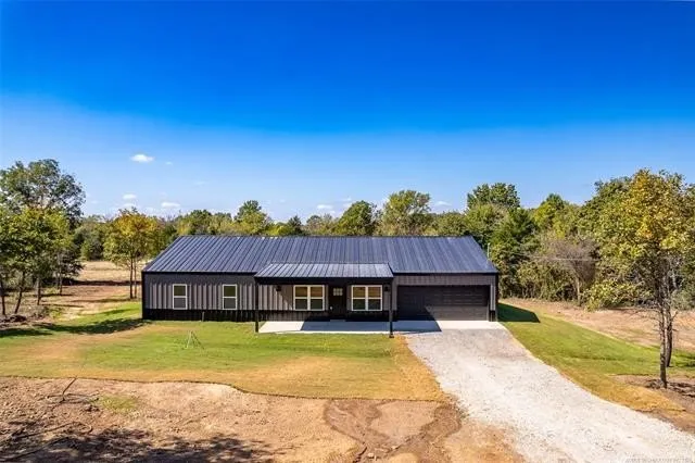 New Barndominium on 2.5 acres m/l, Creek County. Private and partially wooded. Ready by end of September! Custom finishes and cabinetry throughout this one of a kind home! Primary suite with custom closet and spa like bath. Large island open to great room. Oversized laundry/mud room, 2 large pantry rooms. County living that is close to the city. Pastoral view and beautiful Oklahoma sunsets. Call for an appointment today!
