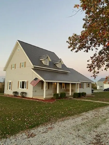 Large updated farm house from the turn of the century. The home has a large main level master suite with a spacious walk-in closet. Half bath on main level for guest as well as a mud room between living area and the attached two car garage. Updates include; newer siding, windows, and a standing seam metal roof. The home is situated on nearly two acres and has a 48x72 pole barn with electric (crushed limestone floor). The home is efficient with an added heat pump and a on demand water heater. The large attic provides ample storage and a possibility for more living space. You will love spending nights on the large front porch complete with a porch swing. The home is just across the county line and approximately ten minutes from Northeastern Schools. Room sizes are approximate and appliances are not warranted.