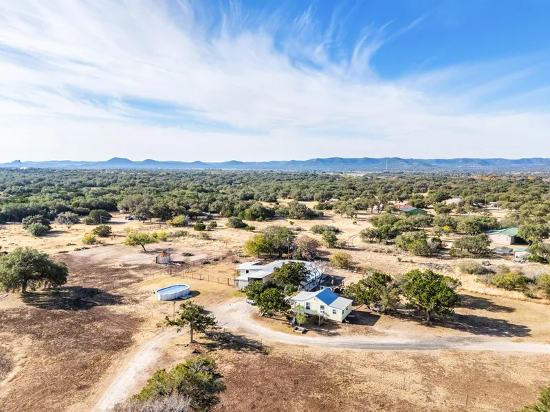 This Hill Country property has rolling hills as its backdrop, and there is literally a view in every direction. There is a small one-bedroom cottage (563 sq ft) with a fireplace that runs on propane), and a barn with a one-bedroom apartment (approx. 378 sq ft), laundry room (9' x 11') workshop and storage, and goat pens and shed. There is city water and a septic tank (750-gallon), and electricity. The electricity in the barn has been upgraded to 200 amperage. The property is completely perimeter-fenced and cross-fenced. With just the right combination of brush and clearings, the land is quite picturesque. A caliche pit close to the house and barn has been used for target practice, but it could be lined and made into a nice stock pond. There is also a possibility to subdivide the land into one-or two-acre home sites. Oaks, cedar, mountain laurel, and persimmon dot the landscape, along with native browse. Wildlife include white tail deer, axis, and native varmints. Enjoy the Nueces River that's right nearby, and just a short 20-minute drive takes you to the Frio for more river fun! Secluded and peaceful with dark, starry skies, this property is worth a look!