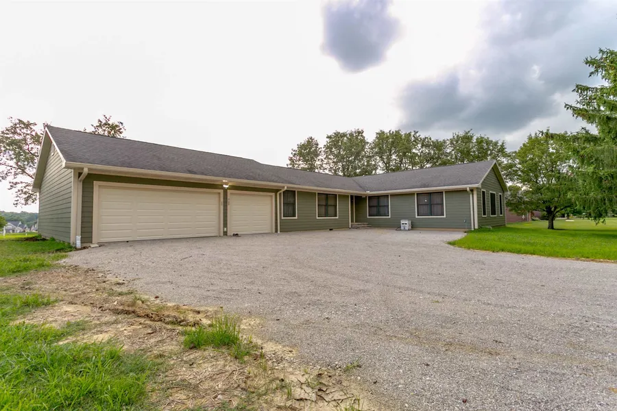 Unique 2.5 acre property with private pond, covered fishing dock, small barn and a pasture a few minutes down the road from Rolling Hills Country Club. This property backs up to Woodfield subdivision. Remodeled Ranch style home with 3 bedrooms, an office and 4 full baths and 2 separate laundry areas. Attached 3 car garage can fit 5+ cars when parked in tandem. Owners have added a 26ft. X 30 ft. En-suite addition with a spacious Main bedroom, private bathroom, an 11.9 ft. X 7.9 ft walk-in closet with custom built-ins, and another laundry closet. Open floor plan with new wood flooring in Great Room, Dining area, hallways, and all bedrooms. Farmhouse charming decor! The farmhouse kitchen features stainless steel appliances, quartz countertops, convection oven, move-able kitchen island and new tile flooring. Brand new exterior door to the patio with built-in blinds. Don't forget to check out the 4 bathrooms! 2 of the 4 bathrooms are brand new with luxurious walk-in tiled showers with all the fancy Rain head shower gadgets. One tiled shower measures 56 in. by 47.5 in.The other new shower measures 55 in. X 42 in. WOW! Private en-suite bathroom features double sink vanity, quartz counters, and a free standing garden tub as well as the walk-in shower. All bedrooms have walk-in closets with built-ins. 2 of the bedrooms have 2 closets. Surprising amenities can be found here. New exterior siding and guttering. The backyard features include a 20 foot deep pond with a covered fishing dock, a small pasture and an outdoor shed previously used as a horse stable. Also there is room for a garden. Castle school bus stops in front of house for pick up and drop off. The sellers' extensive remodeling plans have been cut short due to a job relocation. Some finishing touches are still needed. This will be a wonderful opportunity for someone who loves fishing and country living at its best!