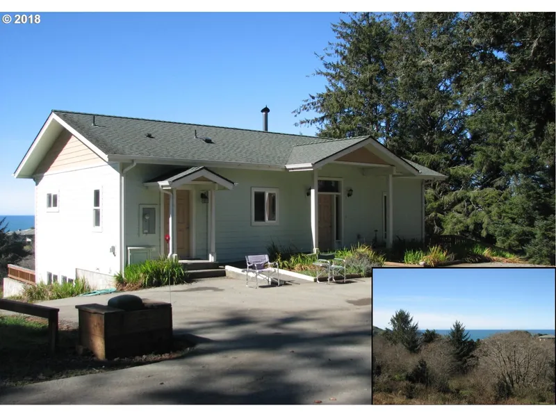 PATH TO BEACH! Newer cottage-style home built in 2010, cute w/Knotty Pine accents, 2bd/2.5ba, great OCEAN VIEW from living, bedrooms & deck. Features include kitchen appliances, tile floor in living & kitchen, woodstove, ceiling fans. Country feel but close to town .87 acre. Garage-great shop area/"man-cave" & 1/2 bath. Circle drive or RV parking. Handicap accessible w/front ramp. Full-time or vacation home!