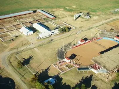 West of the rodeo grounds is a 28,000 sq ft, fully covered riding arena. This large metal building is great for working horses in the winter months. During the Santa Rosa Roundup, it doubles as a dance floor. There is a band stage on the far west side, and a concession area near the entrance on the east.