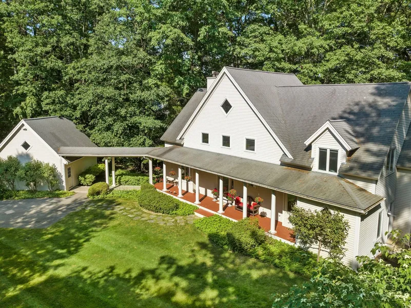 97 Main Street, a spectacular waterfront custom contemporary colonial nestled on almost 2 acres along the Charles River on the Wellesley/Needham border! A rare offering and unparalleled living experience! Architectural gem with dramatic soaring ceilings and walls of windows flooding the living areas with light and framing the stunning views. French doors and a screen porch create a seamless flow between indoors and outdoors. Dramatic double height dining room and living room with a limestone fireplace with built-ins and windowed book nook. Chef’s kitchen features custom cabinetry adjacent to the fireplace with a kiva-style fireplace flanked by built-ins. Cozy corner office and mudroom complete the first floor. The second level boasts an enormous primary suite with a private balcony offering a peaceful spot to enjoy morning coffee. Second ensuite bedroom. Three bed-approved septic system offers the potential for a third bedroom addition. 1800 sq. ft. of unfinished basement provides tons of storage. Gorgeous gardens/lawn in the front and a wooded wonderland in the back with a path to the river are a nature-lovers dream!