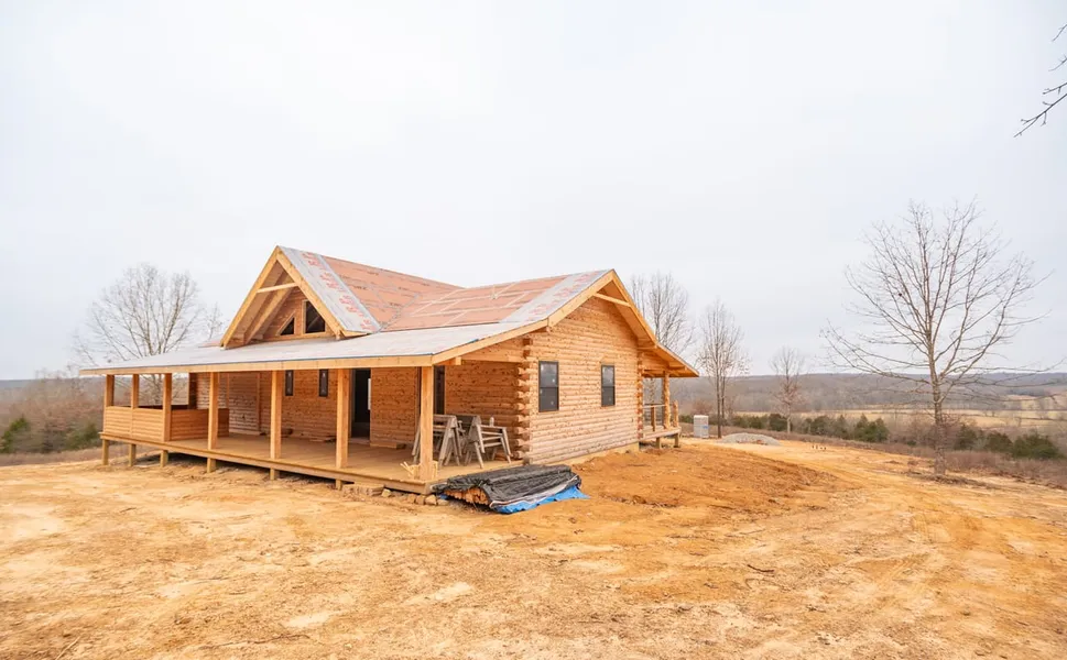 Stunning, totally new built, log cabin sitting pretty on 5 acres in the midst of gorgeous rolling hills, in western Ripley County. Two beds. two baths on main floor, vaulted great room with loft overlooking the outstanding views, with buyer able to choose custom cabinetry for kitchen, as well as tile for the bathrooms and dog wash (seller has paid for all other finishes). End to end front and back covered decks lend to easy entertaining or the perfect place to rock in that rocking chair in quiet relaxation, as the property sits in a peaceful and private location. Unfinished basement, with a built in safe room, offers loads of extra square footage that could include more bedrooms, a family or game room, with bath already plumbed. Plenty of land for your horses or mini farm dreams. Schedule your private showing for this spectacular home today! Construction will be completed by seller.