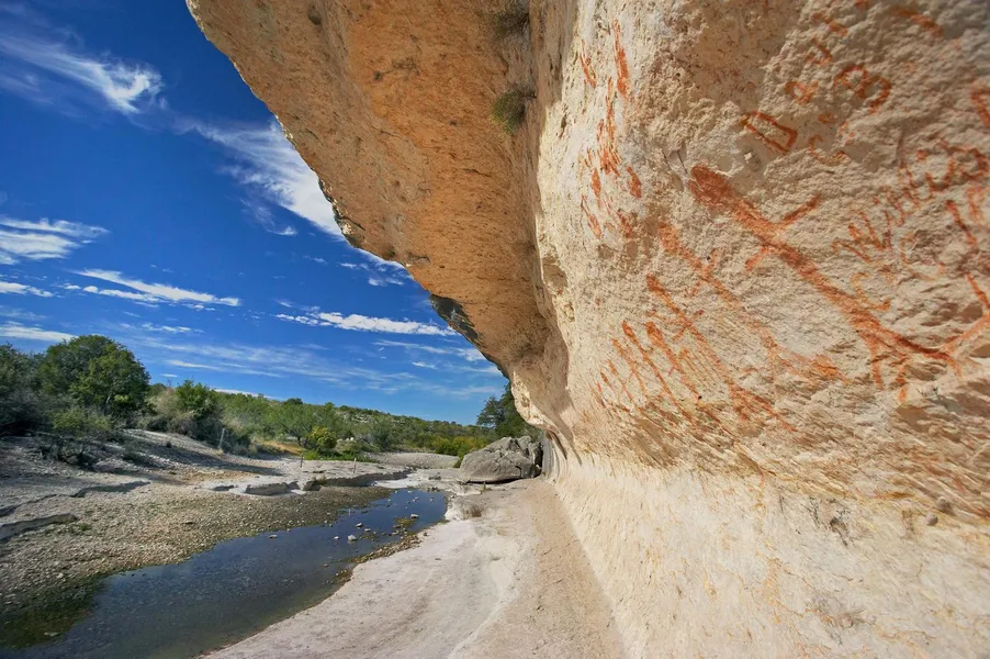 The Natural Historic Register has listed this ranch for its magnificent rock art. The expansive rock outcropping showcasing pictographic paintings that date back 3000 years from paleo man to the Comanches of the 1800's. In addition, this was the camp site for Major John Bullis and his Seminole-Negro-Indian Scouts. The property is high fenced and extensively managed for trophy white tail and mule deer. Along with the native wildlife a division of the ranch also contains elk, black buck and axis deer. An extensive road system allows for easy access through rugged terrain. The ranch is well watered with several springs, tanks, header dams and numerous water wells. The ranch is highly improved with several homes, a barn and a 3500' runway. This is truly a great opportunity to own a property so rich in Texas history.