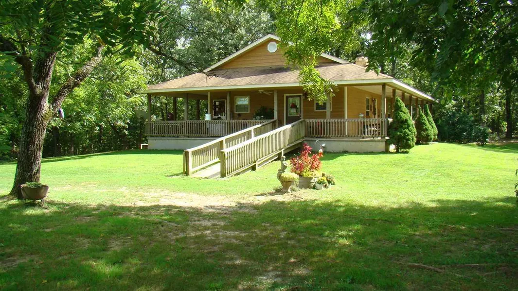 If country living is what you are looking for look no further. 79 acres with 3 homes. The main home is a cozy cottage features a beautiful farmhouse style kitchen, large living room with a magnificent rock fireplace, great to keep you warm on those chilly nights. A 8' wrap around covered concrete porch makes a great place to sit & relax for a bit. Home number 2 is a nice ranch style that features 3 bed/2 bath with open dining/living area-great for entertaining guest. Home number 3 is barn style cabin that features 2 bed/1 bath. Living area has nice wood beams in the ceiling- gives a nice rustic look. 24x28 barn, 40x36 shop/barn with electric & concrete floor, 40x40 pole barn, 16x30 garage with concrete floor, 30x40 implement barn. This property has great income potential- live in one rent 2 out! Property is approx 3 acres pastures remaining in woods/brush great area for whitetail to bed down. Stocked pond. For more information on this listing or any others, contact Linda Francis 417.934.5263