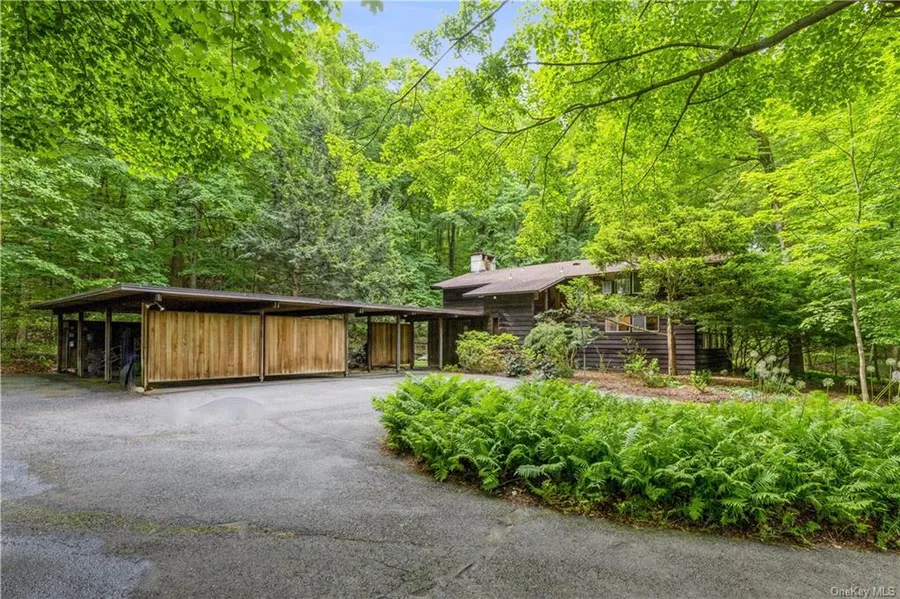 Mid-century modern & effortlessly elegant, this 5 bedroom, 2.5 bath cedar contemporary will soothe your soul. Just you & mountain views on 3.72 secluded, woodsy acres, yet only 45 minutes from NYC! Open flow and walls of glass on ground level bathe you in abundant light & bring the natural world outside in.Hand-crafted stone fireplace, efficient kitchen w/huge pantry & breakfast nook facing the spectacular property. Rustic slate foyer next to floating staircase leads to 4 spacious BR on top floor w/cathedral ceilings, wood floors, laundry room.Master bedroom suite has walk-in closet/dressing area, full bath & stone fireplace.Office & another guest BR on 1st floor.Enchanting screened gazebo w/stone fireplace overlooks slate patio perfect for lazy summer days & crisp autumn nights under the stars.Bonus: wine cellar, beautiful vintage furniture included if desired.Award-winning Suffern schools, close to train, bus, shops, hiking,etc.You don't have to go on vacation--it's here year 'round!