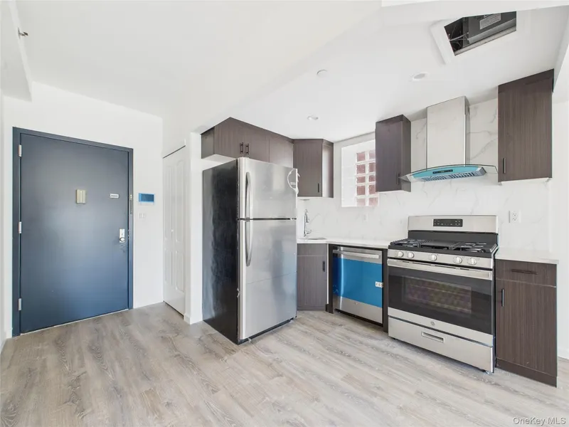 Welcome to Unit 5D, a modern studio apartment located on the 5th floor of a newly constructed building in the heart of Rego Park, Queens. This thoughtfully designed residence features soaring high ceilings, central air and heat, and in-unit laundry for your convenience. The sleek kitchen is equipped with stainless steel appliances, perfect for everyday cooking and entertaining. The apartment also includes a small balcony to enjoy some additional outdoor space
