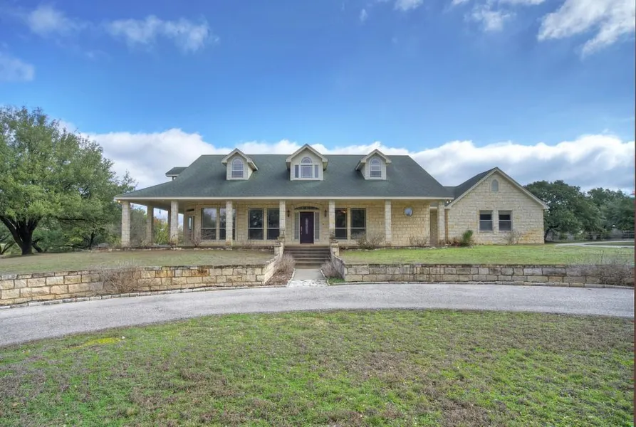 The current owners chose an amazing building site on the highest elevation within their property to construct a traditional Hill Country Texas Style Home. Construction is of cut limestone with wraparound porches, two balconies and a salt water swimming pool for outdoor enjoyment. Inside the home you will find two spacious master bedrooms, Brazilian walnut floors, a study, mudroom, an inviting living room with wood burning fireplace and a two car garage.