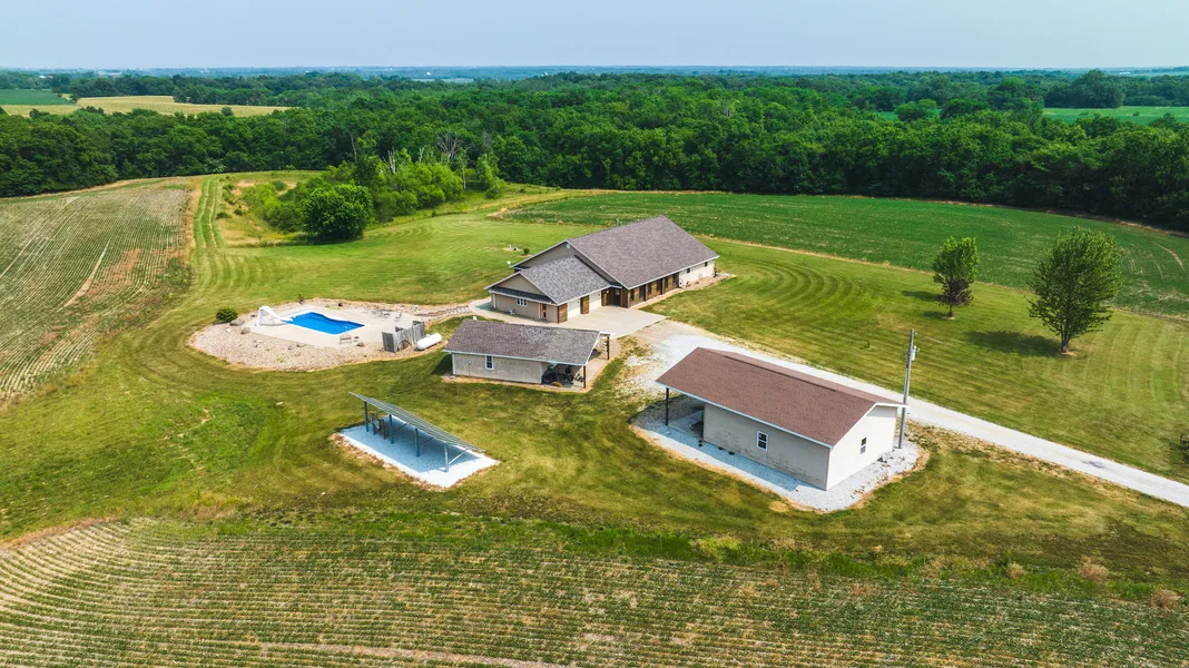 This is a great opportunity to purchase a county home and acreage southeast of Hamilton. The home is located down a long driveway and is situated on 69 acres. This custom-built ICF home was built in 2005 and is approximately 2,600 square feet of finished living area. There are three bedrooms and two full bathrooms including a master bedroom complete with a walk-in closet and jetted tub. The living room and dining room have an open concept and offer plenty of space for furniture and entertaining. There is an adjacent smaller living room that has great views of the countryside that would make a great office area or playroom for the kids. The large kitchen is perfect for cooking for a large family or entertaining guests. The laundry room and pantry/mechanical room are located adjacent to the kitchen/dining room. There is a 30’x30’ attached two-car garage located on the north side of the house. There are two additional buildings which are 24’x26’ and 26’x32’ next to the house. The smaller of the two has been partially finished with heat and air and is currently being used as an office. There is a large outdoor patio on the southeast side of the house along with a 15’x40’ in-ground heated swimming pool. The property offers 20 acres of tillable farm ground rented for $190/acre or $3,800 of annual income. There are several great areas along the north and east side of the property that can be converted to great food plot locations. The property offers rolling topography along with thick bedding cover, mature timber, and an abundance of deer and turkeys. If you are in the market for a top-quality county home and acreage, give land specialist Tyler Sellens a call today for more information or to schedule a private showing.