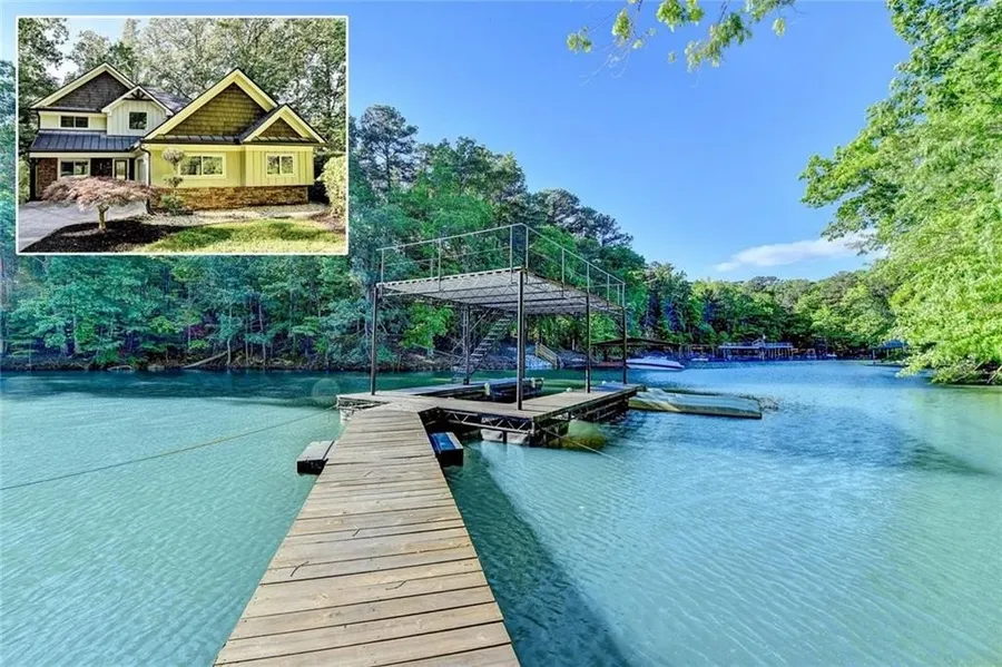 Lake Lanier Party Dock and 4 bed/ 4 bath Home WITH Full In-Law Suite. Looking for a change of pace? Live life with tons of fun during warm, sun-filled days. Whatever your water sport of choice; whether it's fishing, waterskiing, snorkeling, swimming, or boating, it's all here. NO HOA-Bring your toys!! Relax to nature's spectacular, sunset cruises and stay to watch the dreamy twinkling stars come out. Constellations are easy and fun to find. You've just found the perfect lake front/view cove. This home is perfect for entertaining, relaxation, watersports, or just as a second home to getaway. The main home has a stepless entry that opens to the large living room and separate sunroom. Picture your own style against this freshly painted neutral pallet. Open Floor plan on main level includes: hardwoods, moulding, stacked-stone fireside sunken Den, Dining Room and a Kitchen with a broad statement sized stone island with breakfast bar. Fabulous stove top that would delight a chef. Walk-in pantry. Grab a favorite book and relax in the Indoor-outdoor living space as you step out onto the screened in porch boasting a vaulted ceiling with fan. There are stairs from the porch that lead right to the lake's cove and dock. Owners' suite has a view of the cove from the windows on the back of the home along with walk-in closet, large enough for king-sized furniture, and private bathroom. 3 upstairs bedrooms, split bedroom plan, with 2 full bathrooms. Immaculate and move-in ready. In-Law Suite has a 1 bed/1bath, kitchen and its own living room. Private entrance or use the interior steps with wrought iron rails, and hardwoods. Fantastic space for the very sought after multigenerational life style. It can be used as a teen suite, extra living space, guest apartment, or roommate plan. Bells and Whistles include: Judges panel, vaulted ceilings, 2 rear decks, Tray ceilings, Coffered ceilings, antique styled ceilings, wood inlay in den, chef's kitchen, built in closet/organizer, Beadboard, warming fireplace style at oversized tub in in-law suite, french doors and so much more!! Lots of parking between the 2 car side entry garage and extended parking in driveway. Minutes to marketplace Boulevard where there is a Costco, BJ's, Walmart, Outback Steakhouse, Longhorn, Provino's, Chipolte, petco, Ulta, Lowes, Ross, TJ Maxx, HomeGoods to name a few. Hwy 400 is just a few minutes away. About 50 or so miles to Hartsfield Jackson, International Airport. Leave the hectic, hustle, bustle, and chaos behind. Go on and step down the Park-like walk from the home to a 1 slip dock and 2 personal watercraft floating docks. Float on over quickly to Bald Ridge Marina and gas up, largest portion of the lake is South at Buford Dam, just minutes away. Margaritaville with its fireworks on major holidays and varies through the year. Port Royal, Pelican Petes, Pig Tails and Fish Tails are great to dock your boat and get a beverage and a bite to eat. Lake living is its own laid-back lifestyle. Come enjoy it!