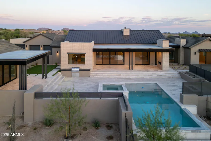 Welcome to the epitome of modern luxury living in the heart of our exclusive lifestyle community, Desert Mountain. This brand-new custom home just completed in July, defines elegance and sophistication, offering a harmonious blend of contemporary design, opulent features, and an unparalleled level of craftsmanship. Spanning an expansive 4600 square feet, this residence boasts 5 bedrooms, 5.5 baths, and a host of amenities that cater to every facet of refined living. Step inside and be captivated by the seamless integration of indoor and outdoor spaces. The open-concept layout flawlessly transitions from the interior's sleek lines and top-tier finishes to the captivating outdoor oasis. The heart of this home lies in its gourmet kitchen, complete with state-of-the-art appliances and an exquisite butler's pantry, perfect for culinary enthusiasts and gracious hosts alike. Abundant natural light illuminates the interior through large windows that showcase the breathtaking surroundings. Unwind in the luxurious primary suite, a serene retreat featuring a spa-like en-suite bath and a walk-in closet. Four additional well-appointed bedrooms each with their own en-suite baths provide comfort and privacy for family members and guests. Completing this exceptional property is a guest house that offers versatile space, ideal for an art studio, home office, gym, or additional living quarters. Located within our sought-after lifestyle community, residents enjoy exclusive access to amenities that include 7 golf courses, fitness, tennis, pickleball, swimming, and 7 restaurants. Membership is not included with this property, however additional information regarding membership applications is available through the document tab."