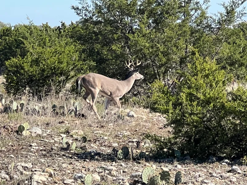 High Lonesome Ranch East is located in NE Val Verde County near Juno, Tx. The ranch is 43 miles SW of Sonora, Tx off Hwy. 189. This region is the southern end of the Edwards Plateau, which creates a landscape of outstanding beauty and diversity supporting a wide variety of native and exotic game species. The terrain on the ranch varies from large wide valleys covered with cedar, widely scattered live oak, hackberry, mesquite, and wild persimon trees to flat topped hills and rugged canyons with escarpment oaks, cedar and native brush cover. Wildlife on the ranch includes native whitetail deer, free ranging exotics (axis deer, aoudad, fallow deer), feral hogs, Rio Grande turkey, quail and dove.