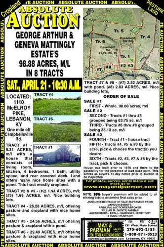 Located: 1110 McElroy Pike, Lebanon KY